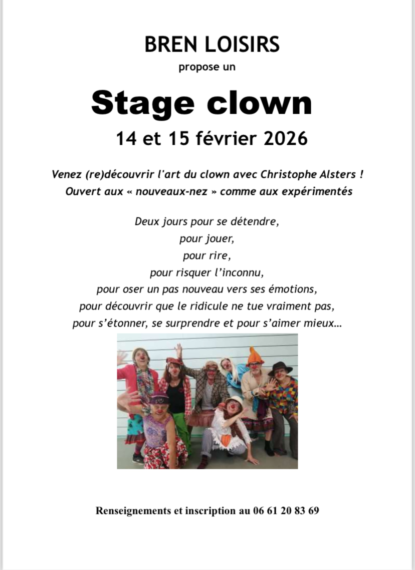 Bren loisirs vous propose un stage clown les 14 et 15 février.